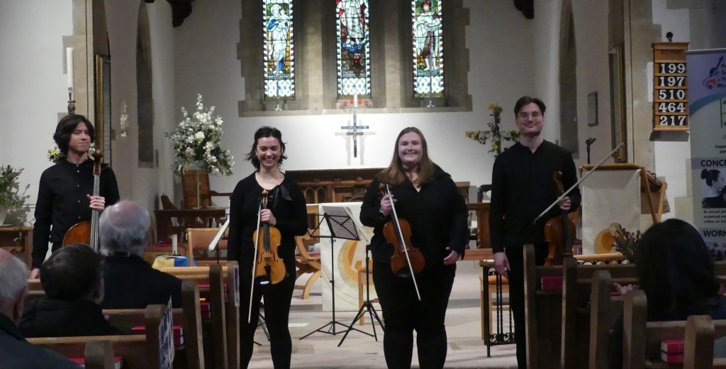 We are delighted to welcome the SALWA string quartet from the Royal Academy of Music String quartet and continuing our association with Jon Thorne who facilitates these stunning musicians so that we can benefit from hearing and our young musicians can work with them in Broadstone. The quartet will present a chamber music workshop for our young musicians before the recital. This will be open to the public with a concert ticket. Time TBC