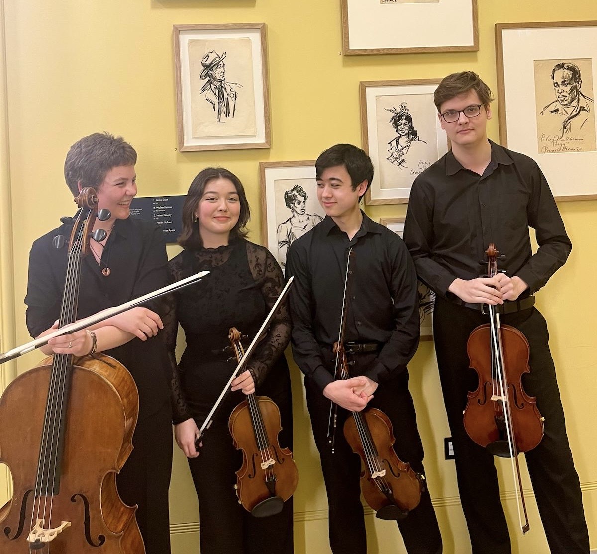 Formed in early 2023 the Seion Quartet have enjoyed a variety of different performances and opportunities in the recent months. Some of these include a collaboration with Merton College Oxford, performing repertoire by Felix Mendelssohn, Webern and Mozart. We were also honoured to perform in the RCM’s Super String Sunday held in the Amaryllis Fleming Concert Hall last May. Last term we played in the Broadstone Music Series in Dorset and thoroughly enjoyed a Shostakovich project alongside the Brodsky Quartet at the RCM. Members of the quartet were chosen to collaborate with the Sacconi Quartet in a concert at the RCM and played in the Sacconi Festival in Folkestone earlier last year. The members of the Seion Quartet are Joe MacDonald who studies with Radu Blidar, Sally Aiko Dando who studies with Lyutsia Ibragimova, Joe Berry who studies with Johnathan Barritt and Carys Underwood who studies with Richard Lester. The Seion Quartet have received coaching from world renowned musicians and quartets such as the Maggini, Solem, Sacconi, Brodsky Quartets, Simon Rowland-Jones and Denis Brott. The name ‘Seion’ ties in with Joe MacDonald and Sally’s Japanese connections which can be translated to ‘tone of voice’ or ‘serenity’.
